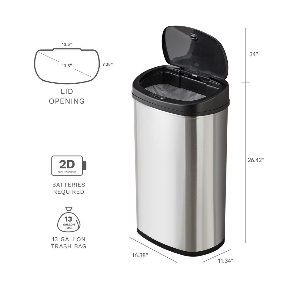 13.2 gal /50 L Motion Sensor Kitchen Garbage Can, Stainless Steel