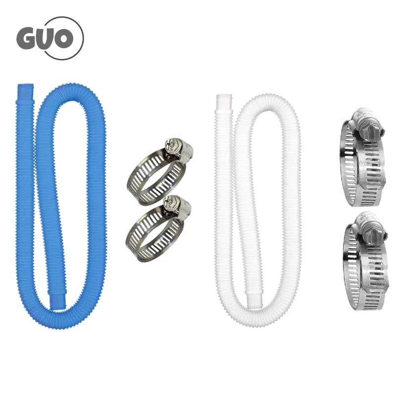 Material: It is made of flexible polyethylene plastic which is leak proof, durable, lightweight and flexible. The hose structure of the pool filter maximizes the resistance to rays and chemicals. The clamp is made of steel, it can be used for double insulation or single pump.
