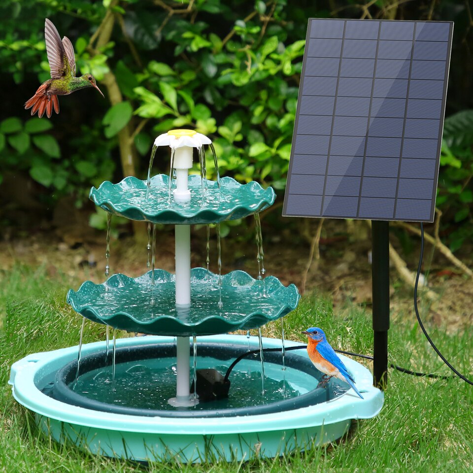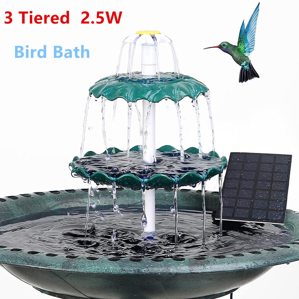 - 【Bird Bath Set】2.5W solar fountain with 3 tiered bird bath, combo set for bird bath, easy to assemble and clean up. You can use it as a complete bird bath set, you can also put it in the bird bath bowl as an additional decoration. Ideal patio decoration for attracting birds.