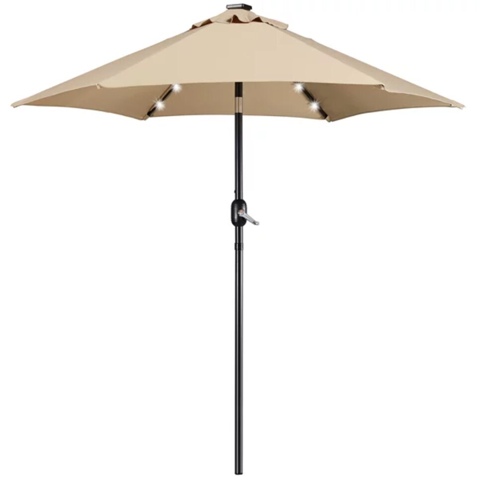 SmileMart 7.5ft Standard Patio Umbrella with LED Lights, Tan: