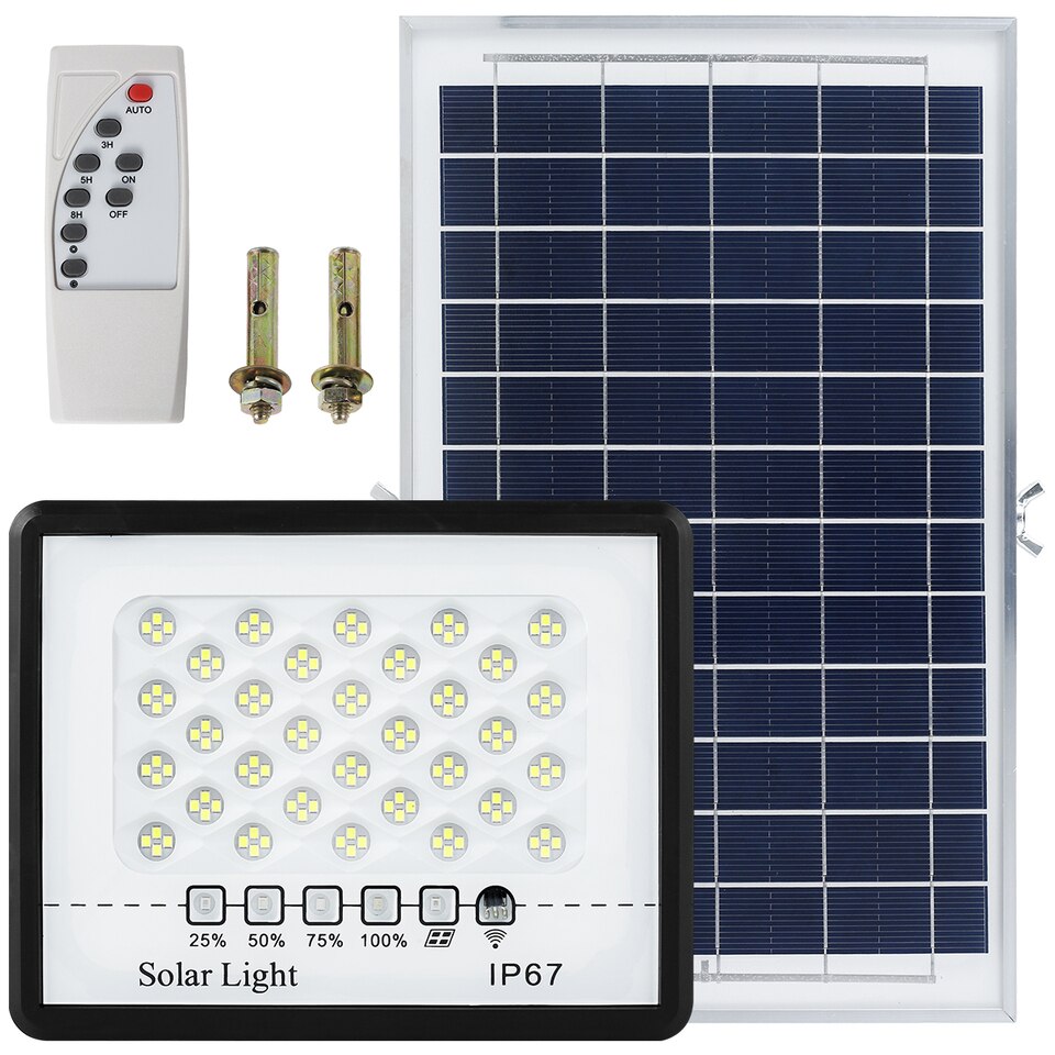 You can hang it on the wall, on a flagpole or fix it on the ground with screws. With built-in light sensor, the solar light will turn on at dusk and turn off automatically at dawn. You can also use the remote to turn the lights on/off.